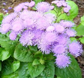 Description: Annual herb, 30-50 cm. high. Stem erect, hairy, green or purple. Leaves opposite, broadly ovate, crenate, coarsely hairy on both sides, 3-nerved at the base. The inflorescence is a terminal corymb of many small heads; flowers violet or white. Achene minute, black, 5-echinate.
