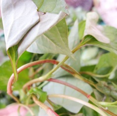 Description: Perennial herbaceous plant, 20-40 cm. high. Stems greenish or reddish-purple. Leaves alternate, heart-shaped with stalk sheathing the stems, emitting a fishy smell when crushed. Inflorescence in axillary or terminal spike; flowers small, pale-yellow; bracts white. Seeds oval, glabrous.